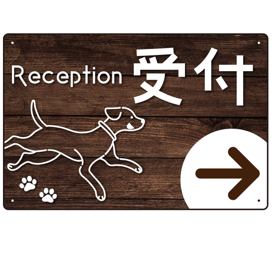 ペット施設向け 木目調案内板 オリジナルプレート看板 受付/右矢印 W450×H300 エコユニボード(SP-SMD798CR-45x30U)