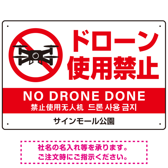 ドローン使用禁止 オリジナルプレート看板 ホワイト ヨコ型 W450×H300 エコユニボード(SP-SMD800A-45x30U)
