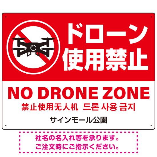 ドローン使用禁止 オリジナルプレート看板 レッド ヨコ型 W600×H450 エコユニボード(SP-SMD801A-60x45U)