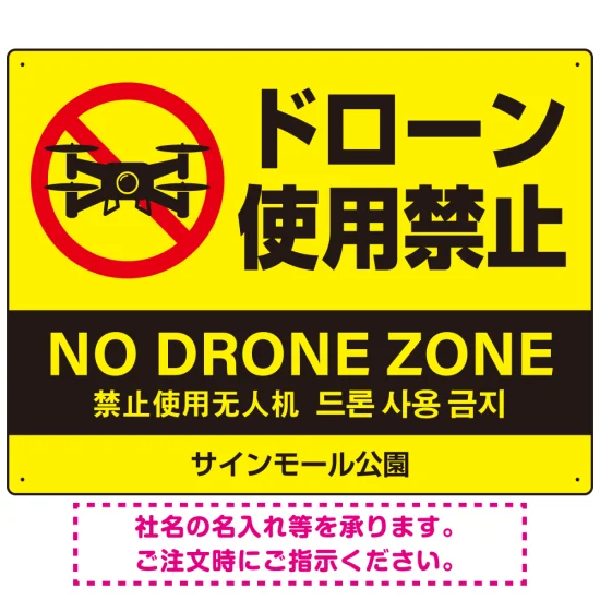 ドローン使用禁止 オリジナルプレート看板 イエロー ヨコ型 W600×H450 エコユニボード(SP-SMD802A-60x45U)
