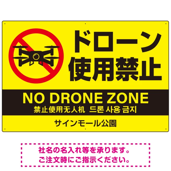 ドローン使用禁止 オリジナルプレート看板 イエロー ヨコ型 W900×H600 エコユニボード(SP-SMD802A-90x60U)