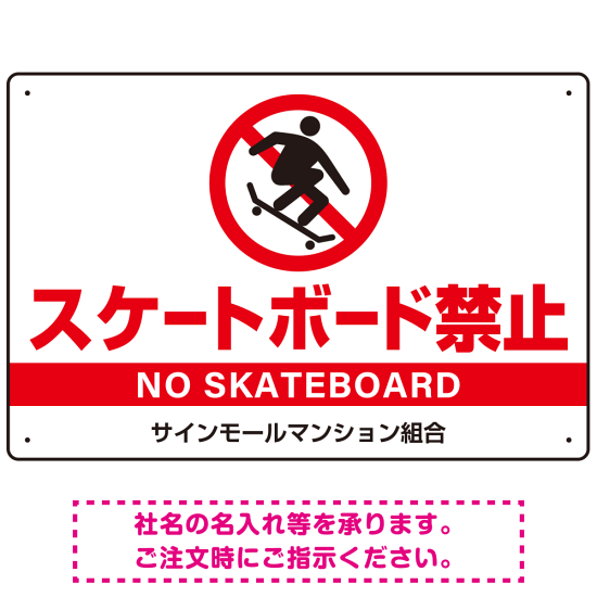 商品説明:スケートボード禁止 オリジナルプレート看板 ホワイト ヨコ型 W450×H300 エコユニボード(SP-SMD803A-45x30U)
