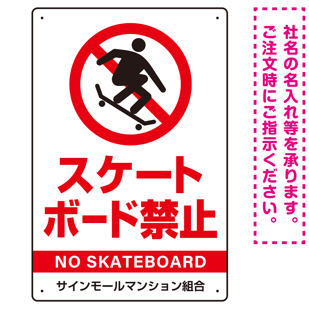 商品説明:スケートボード禁止 オリジナルプレート看板 ホワイト タテ型 W450×H300 エコユニボード(SP-SMD803B-45x30U)