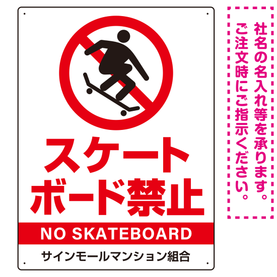 商品説明:スケートボード禁止 オリジナルプレート看板 ホワイト タテ型 W600×H450 エコユニボード(SP-SMD803B-60x45U)