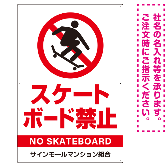 商品説明:スケートボード禁止 オリジナルプレート看板 ホワイト タテ型 W900×H600 エコユニボード(SP-SMD803B-90x60U)