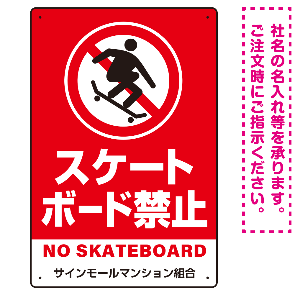 商品説明:スケートボード禁止 オリジナルプレート看板 レッド タテ型 W450×H300 エコユニボード(SP-SMD804B-45x30U)