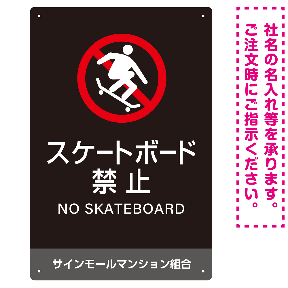 商品説明:スケートボード禁止 オリジナルプレート看板 ブラック タテ型 W450×H300 エコユニボード(SP-SMD805B-45x30U)
