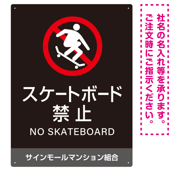 商品説明:スケートボード禁止 オリジナルプレート看板 ブラック タテ型 W600×H450 エコユニボード(SP-SMD805B-60x45U)