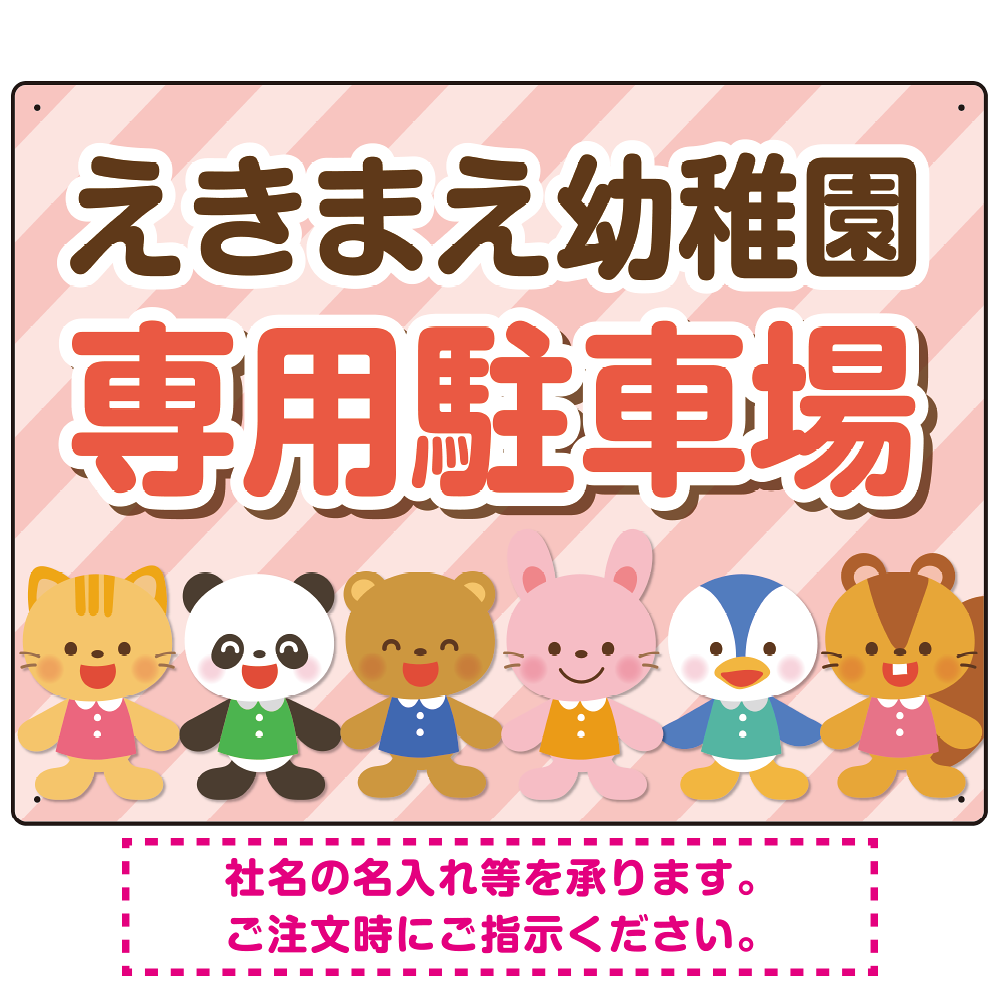 - 幼稚園や保育園の専用駐車場で使用ができる、かわいらしいイラスト入りのプレート看板です。