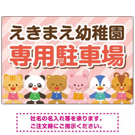 - 幼稚園や保育園の専用駐車場で使用ができる、かわいらしいイラスト入りのプレート看板です。