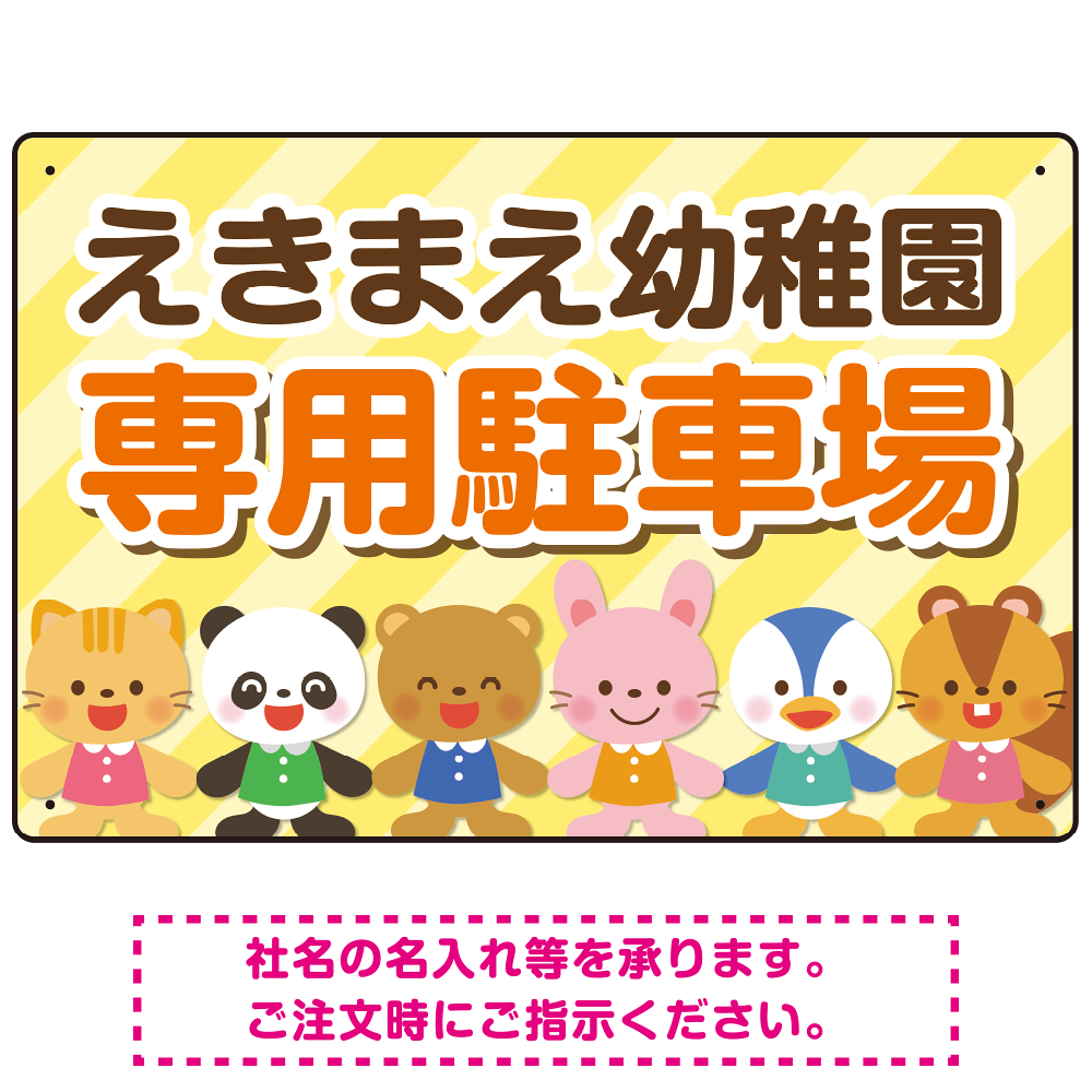 - 幼稚園や保育園の専用駐車場で使用ができる、かわいらしいイラスト入りのプレート看板です。