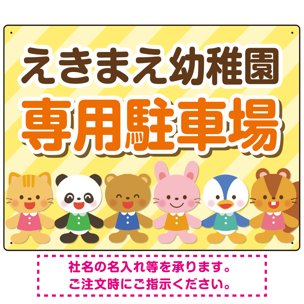 - 幼稚園や保育園の専用駐車場で使用ができる、かわいらしいイラスト入りのプレート看板です。
