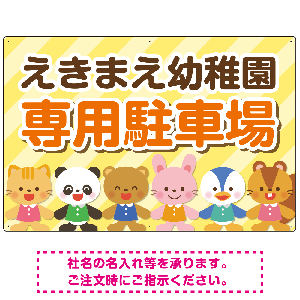 - 幼稚園や保育園の専用駐車場で使用ができる、かわいらしいイラスト入りのプレート看板です。
