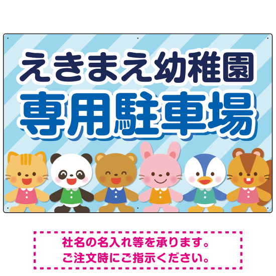 - 幼稚園や保育園の専用駐車場で使用ができる、かわいらしいイラスト入りのプレート看板です。