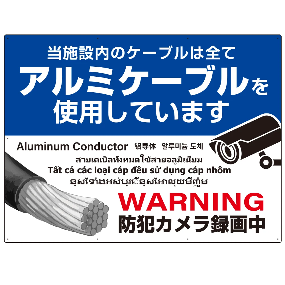- 7カ国語対応 銅線盗難防止 アルミケーブル使用 警告デザイン オリジナル プレート看板
