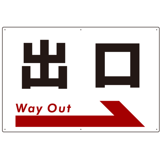 - 大きな「出口」の表示に矢印を組み合わせたデザイン。スムーズな誘導に一役買います。