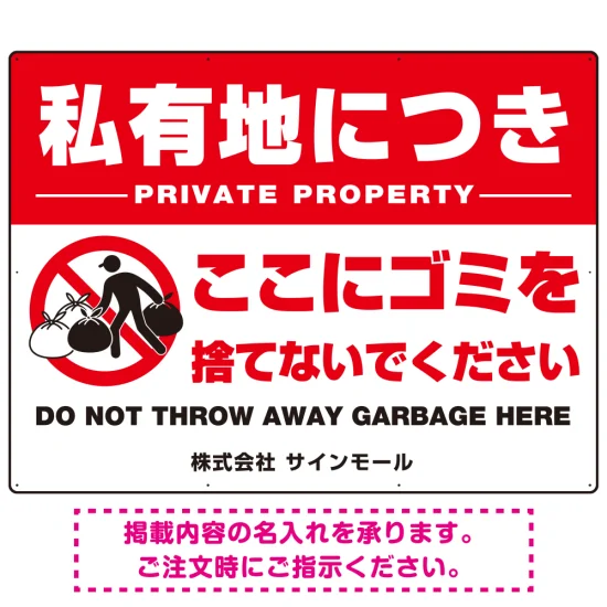 - 私有地につきここにゴミを捨てないでください こっそりゴミを捨てる人デザイン プレート看板