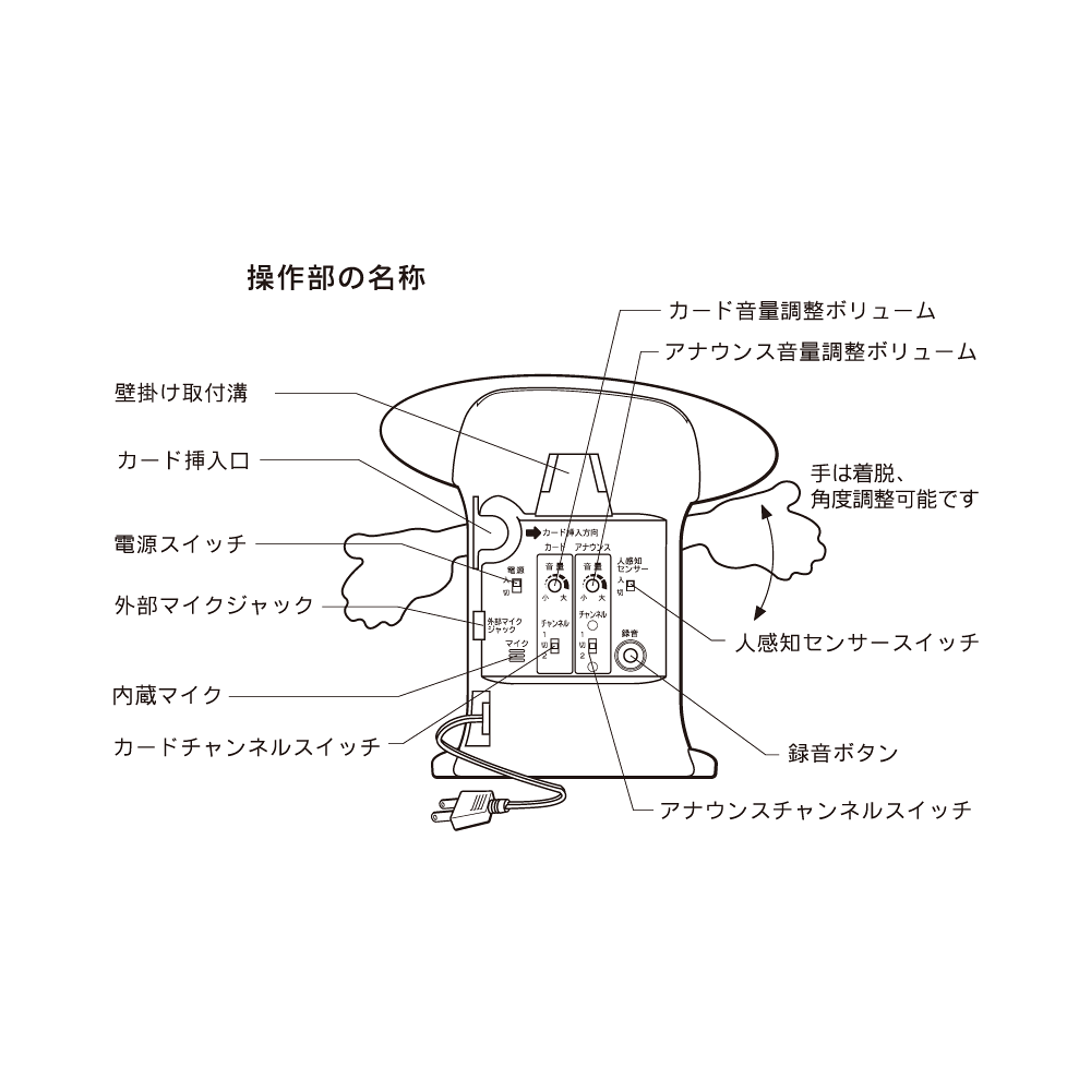 - 2パターンのアナウンスが録音可能なので、シーンに応じて切り替えも可能。