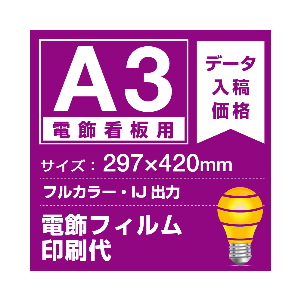 A3(297×420mm)サイズの電飾フィルム印刷費です。電飾看板にセットして掲示できます。