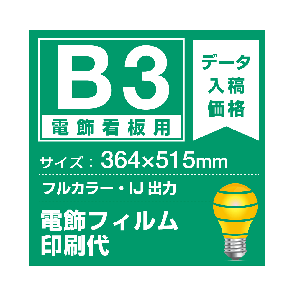 B3(364×515mm)サイズの電飾フィルム印刷費です。電飾看板にセットして掲示できます。