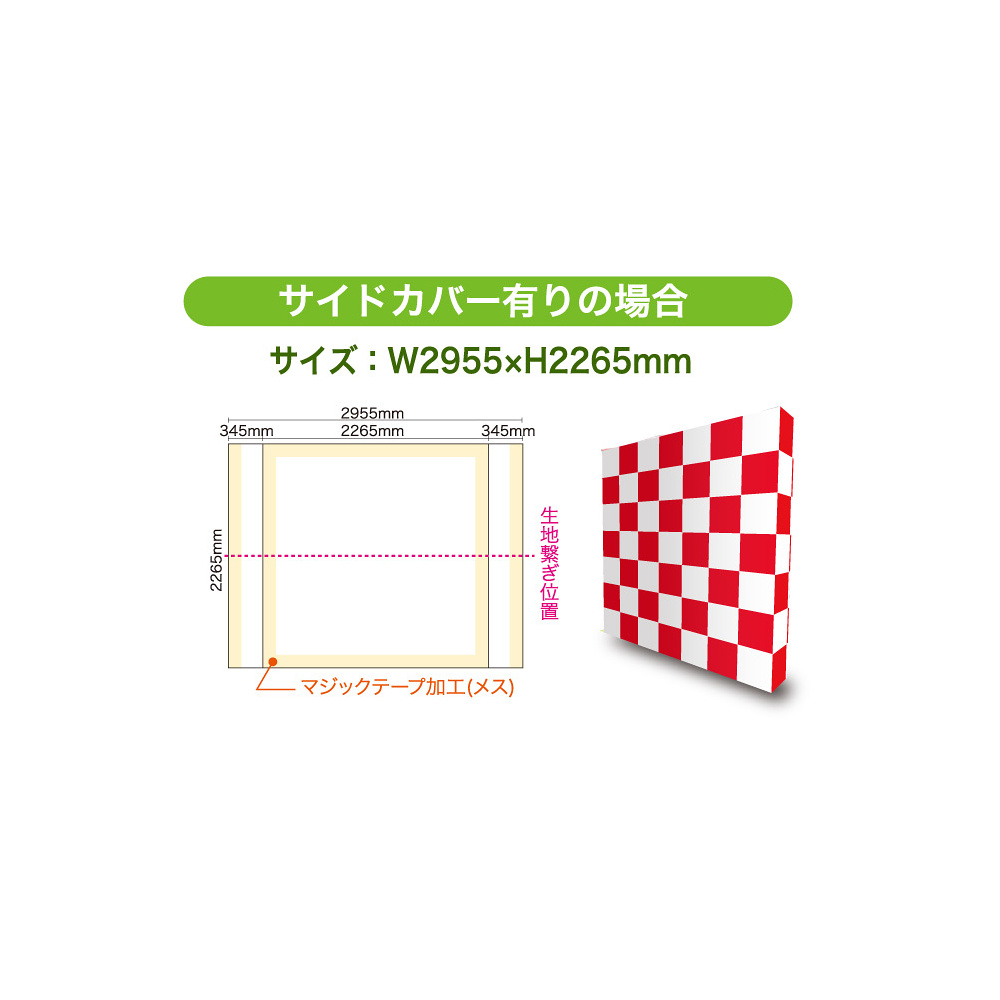楽々!バックパネルスタンド3×3用 印刷製作代 (※本体別売) 防炎トロクロス【つなぎ目なしの1枚布】 サイドカバー有り 本体同時購入用 (Print-19304-FV2)