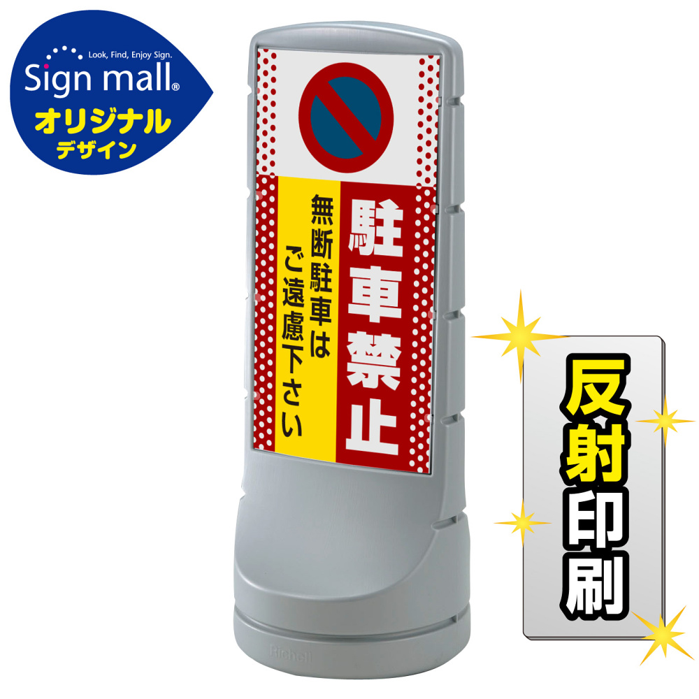 商品説明:スタンドサイン120 ドット柄 駐車禁止 無断駐車はご遠慮下さい SMオリジナルデザイン シルバー (両面) 反射出力