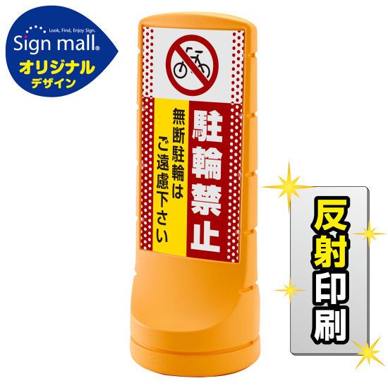 商品説明:スタンドサイン120 ドット柄 駐輪禁止 無断駐輪はご遠慮下さい SMオリジナルデザイン イエロー (片面) 反射出力