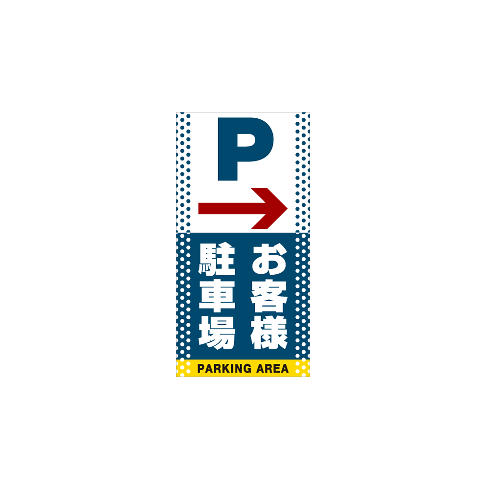 商品説明:スタンドサイン120 ドット柄 右矢印+お客様駐車場 SMオリジナルデザイン イエロー (片面) 通常出力
