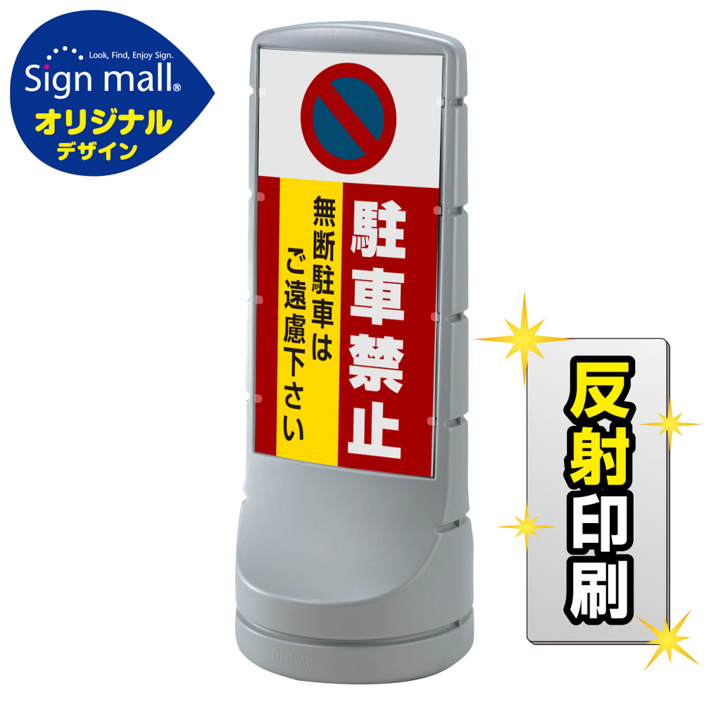 商品説明:スタンドサイン120 駐車禁止 無断駐車はご遠慮下さい SMオリジナルデザイン シルバー (片面) 反射出力