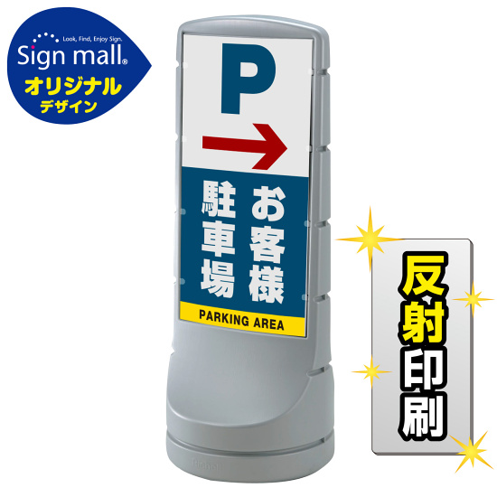 商品説明:スタンドサイン120 右矢印+お客様駐車場 SMオリジナルデザイン シルバー (片面) 反射出力
