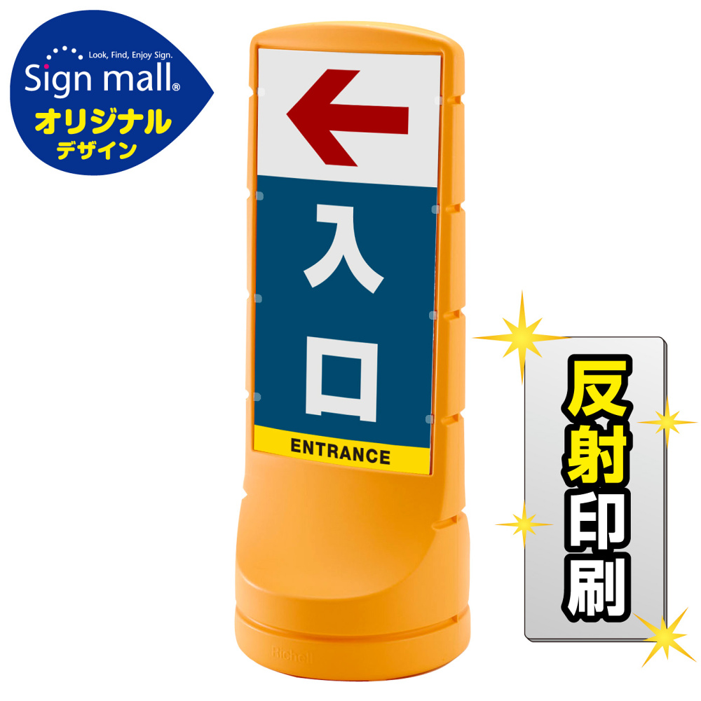 商品説明:スタンドサイン120 左矢印+入口 SMオリジナルデザイン イエロー (両面) 反射出力
