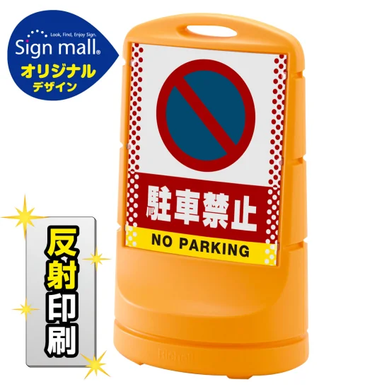 スタンドサイン80 ドット柄 駐車禁止 (駐車禁止マーク) SMオリジナルデザイン イエロー (片面) 反射出力