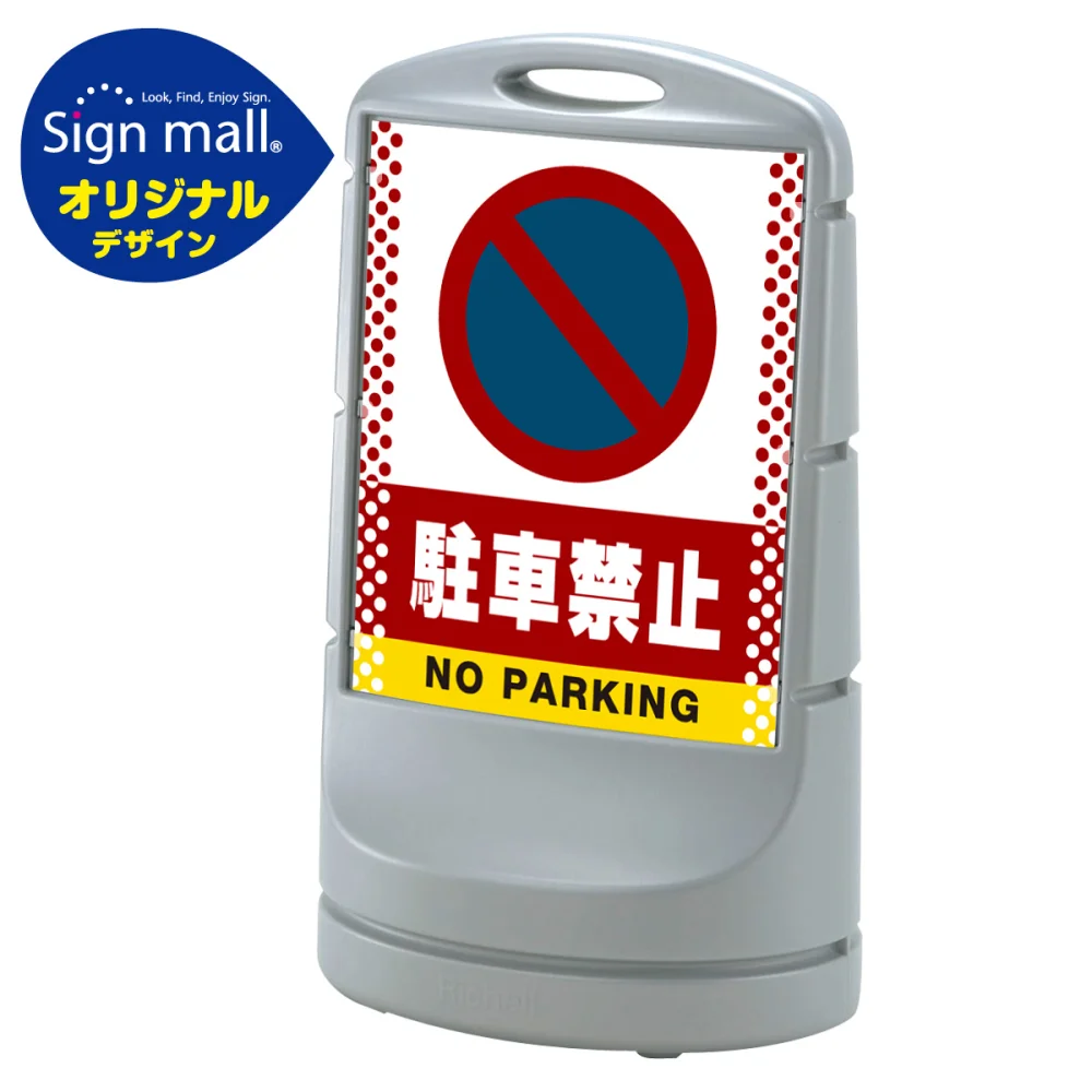 スタンドサイン80 ドット柄 駐車禁止 (駐車禁止マーク) SMオリジナルデザイン シルバー (両面) 通常出力