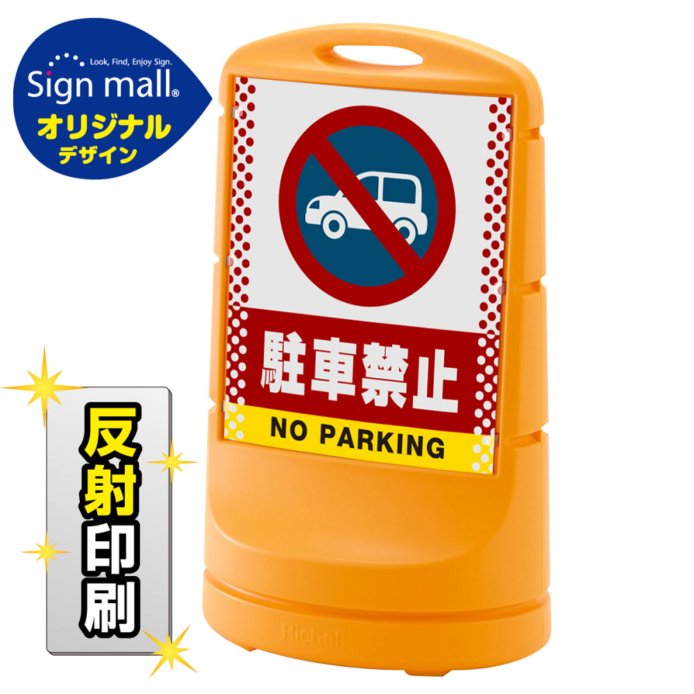 商品説明:スタンドサイン80 ドット柄 駐車禁止 (車マーク) SMオリジナルデザイン イエロー (片面) 反射出力