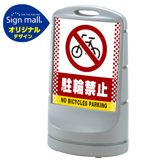 商品説明:スタンドサイン80 ドット柄 駐輪禁止 SMオリジナルデザイン シルバー (片面) 通常出力