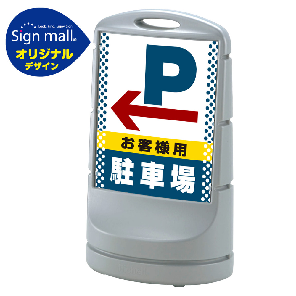 スタンドサイン80 ドット柄 左矢印+お客様駐車場 SMオリジナルデザイン シルバー (片面) 通常出力