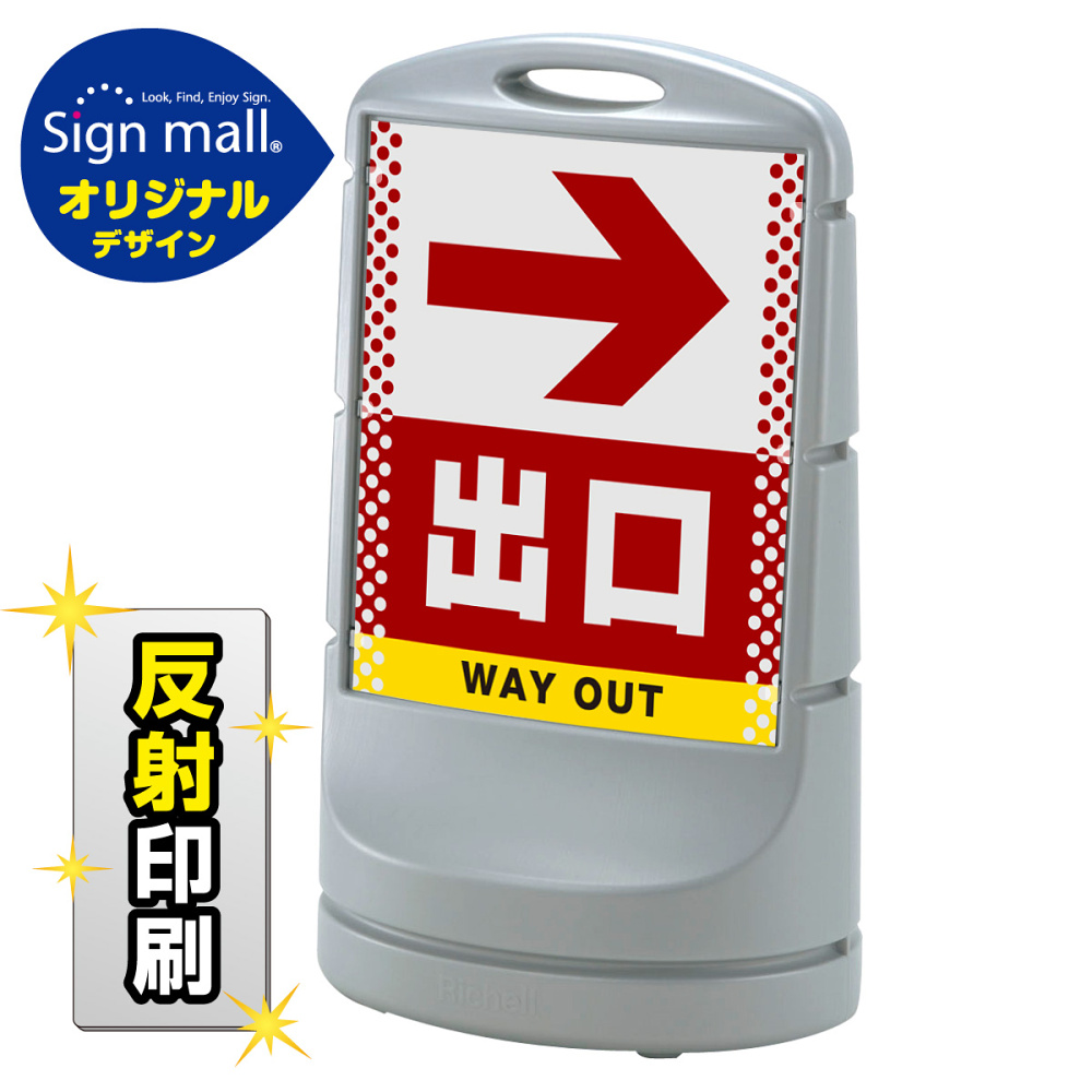 商品説明:スタンドサイン80 ドット柄 右矢印+出口 SMオリジナルデザイン シルバー (両面) 反射出力