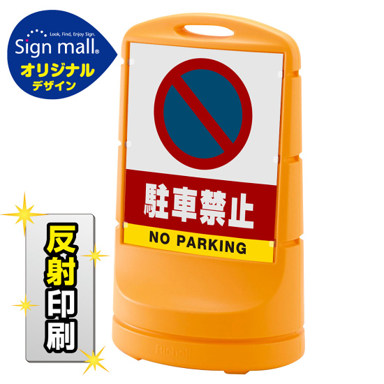 スタンドサイン80 駐車禁止 (駐車禁止マーク) SMオリジナルデザイン イエロー (片面) 反射出力