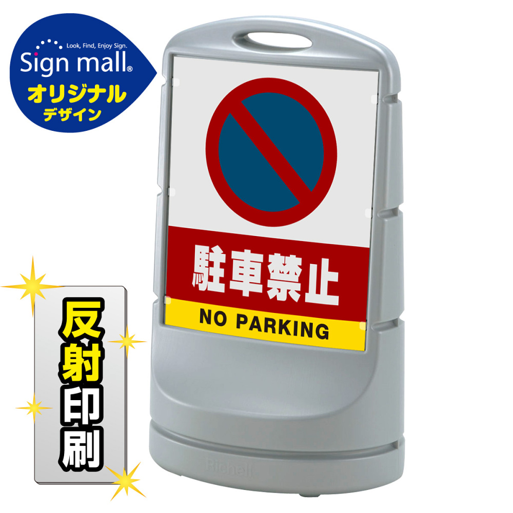 スタンドサイン80 駐車禁止 (駐車禁止マーク) SMオリジナルデザイン シルバー (片面) 反射出力