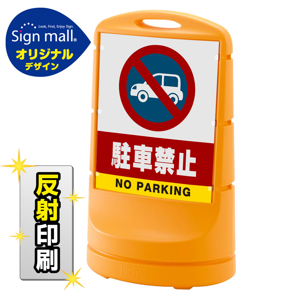商品説明:スタンドサイン80 駐車禁止 (車マーク) SMオリジナルデザイン イエロー (両面) 反射出力