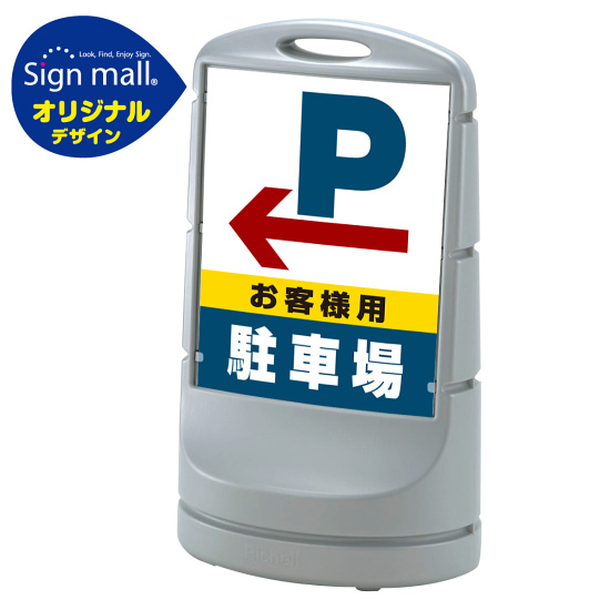 商品説明:スタンドサイン80 左矢印+お客様駐車場 SMオリジナルデザイン シルバー (片面) 通常出力