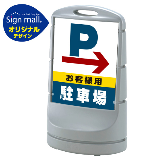 商品説明:スタンドサイン80 右矢印+お客様駐車場 SMオリジナルデザイン シルバー (片面) 通常出力