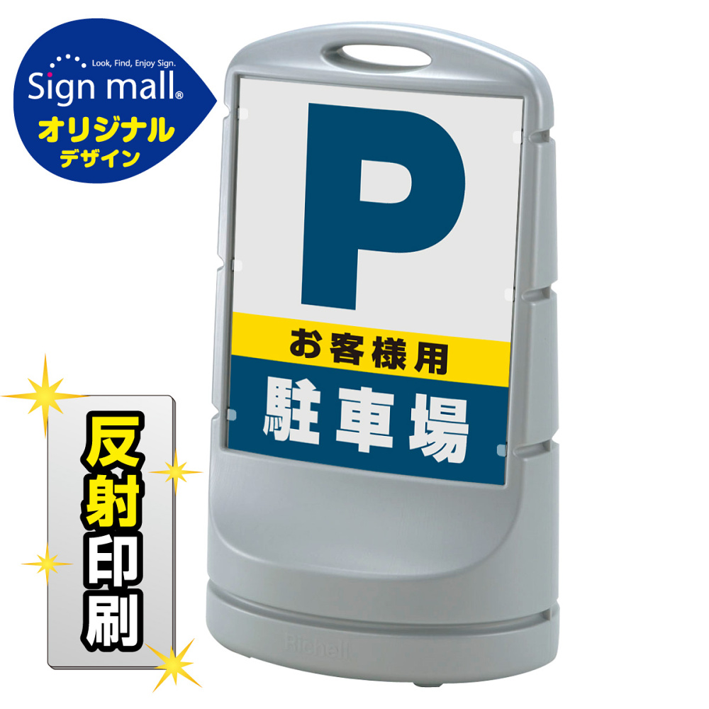 スタンドサイン80 お客様駐車場 SMオリジナルデザイン シルバー (両面) 反射出力
