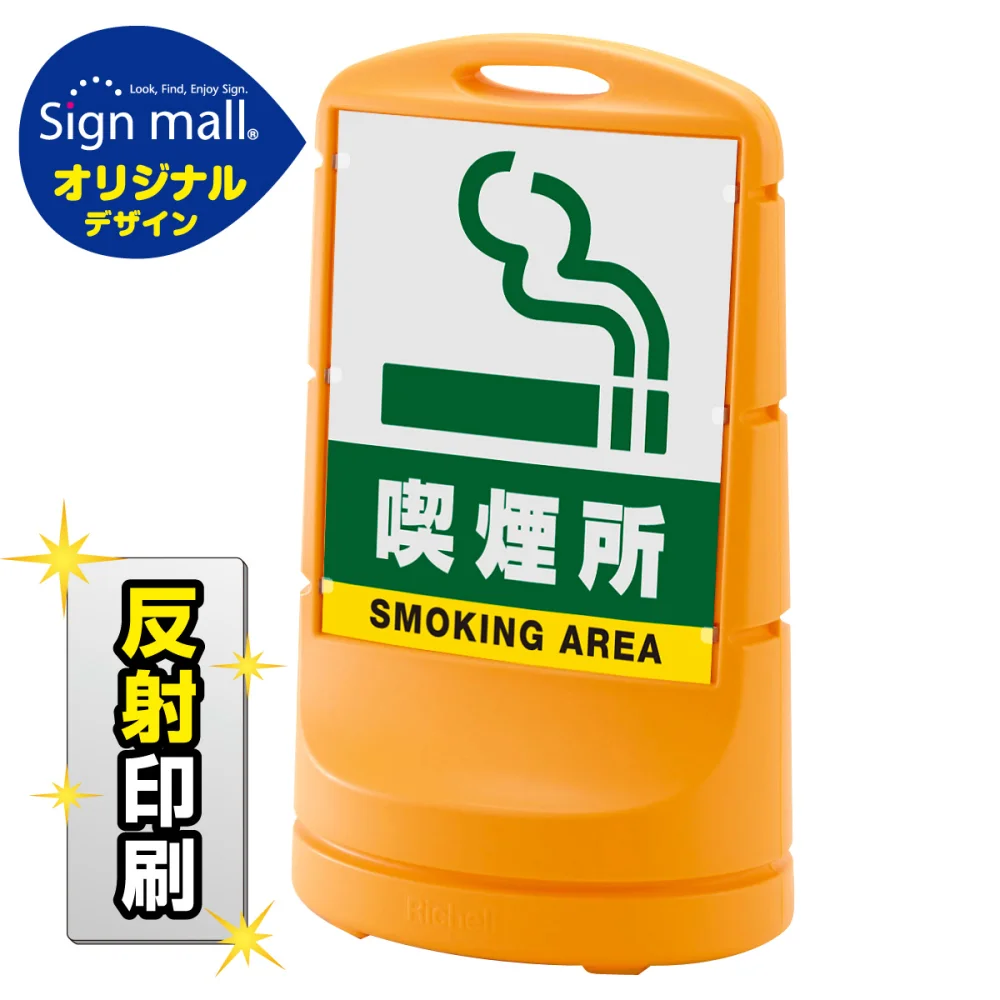 スタンドサイン80 喫煙所 SMオリジナルデザイン イエロー (両面) 反射出力 の商品詳細