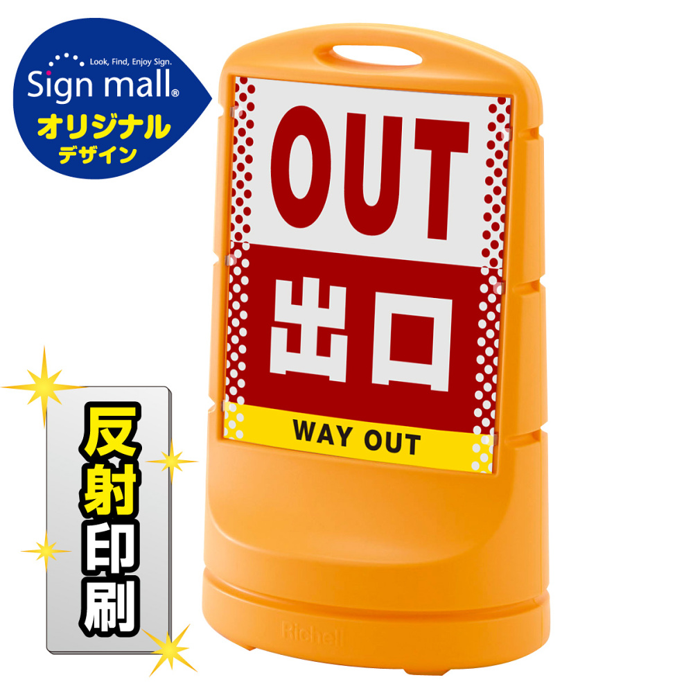 商品説明:スタンドサイン80 ドット柄 出口 SMオリジナルデザイン イエロー (片面) 反射出力