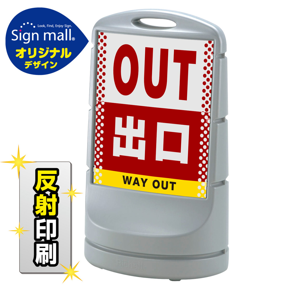 商品説明:スタンドサイン80 ドット柄 出口 SMオリジナルデザイン シルバー (片面) 反射出力
