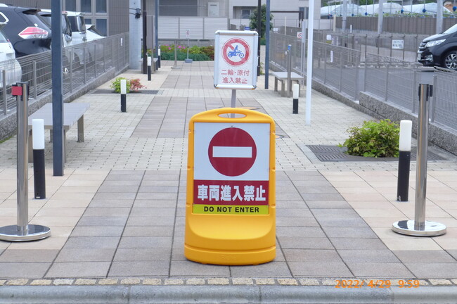 歩道に配達バイクが進入するのを止めるために「車両」の文字を追加した。