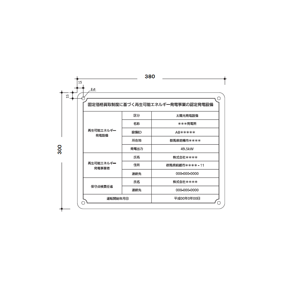 改正FIT法で、20KW以上の発電施設への標識の掲示が義務づけられました!本商品は改正FIT法適合の標識プレートです。