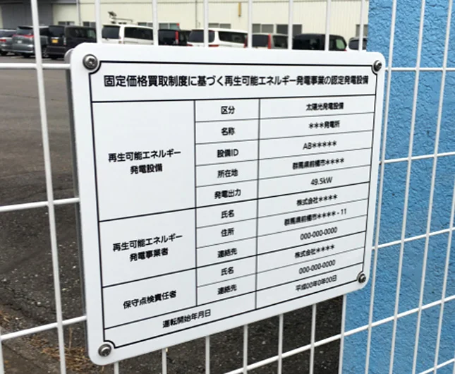 よくある質問:改正FIT法対応 太陽光発電施設用標識看板(関東積水樹脂製) 規格:タイプB (氏名欄2行)