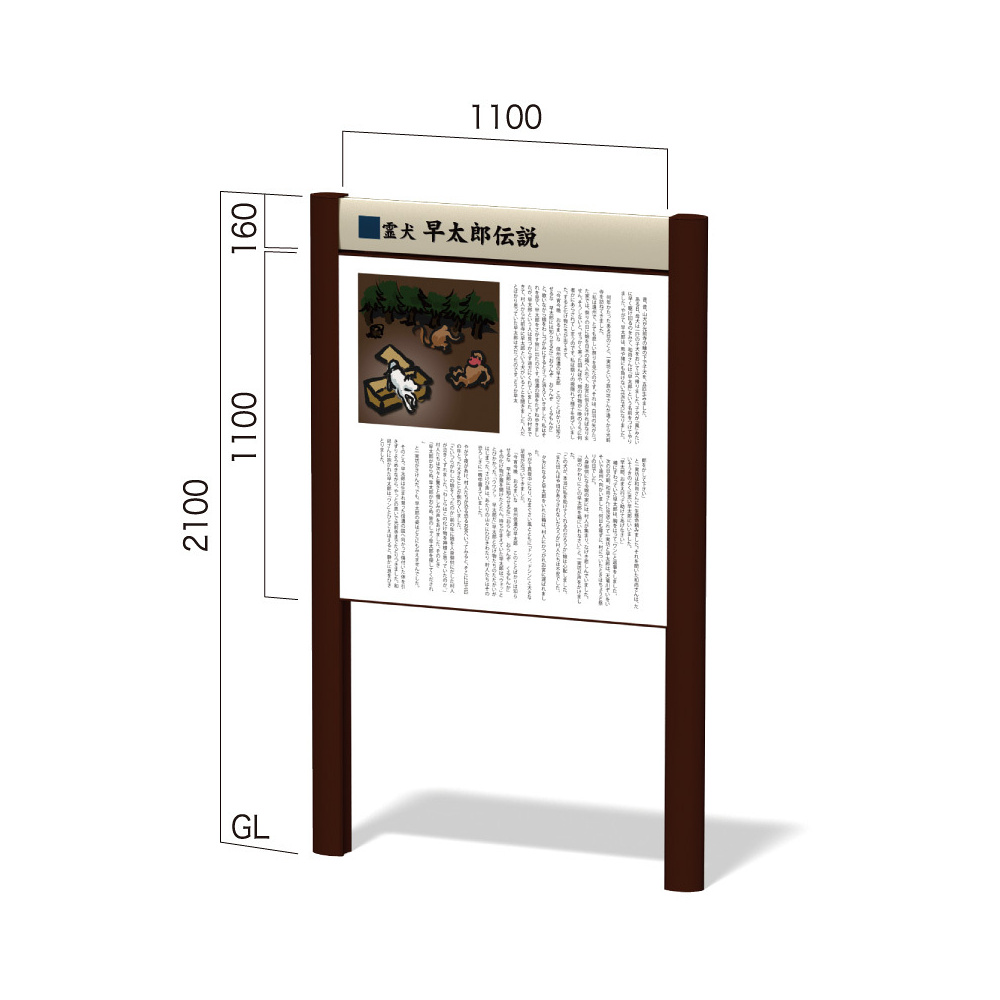 タイトル付き自立埋込み型案内サイン インフォメックス VR-1 R支柱 (幅W1100)